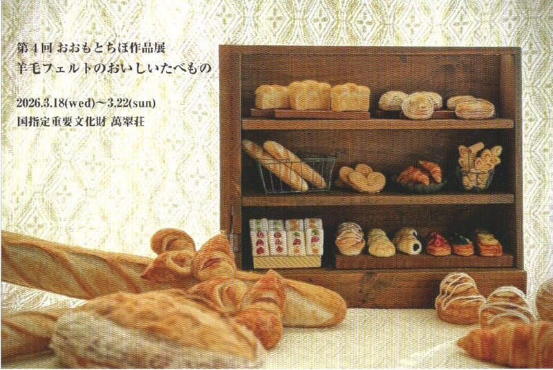 萬翠荘 ホームに戻る|イベント・展示の予定|第4回 おおもとちほ作品展 「羊毛フェルトのおいしいたべもの」
